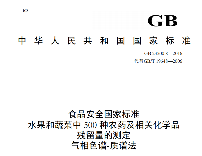 GB 23200.8-2016 食品安全國家標準 水果和蔬菜中500種農藥及相關化學品殘留量的測定 氣相色譜-質譜法 GB 23200.8-2016 食品安全國家標準 水果和蔬菜中500種農藥及相關化學品殘留量的測定... 更新日期:2022-12-30 下載包(1)